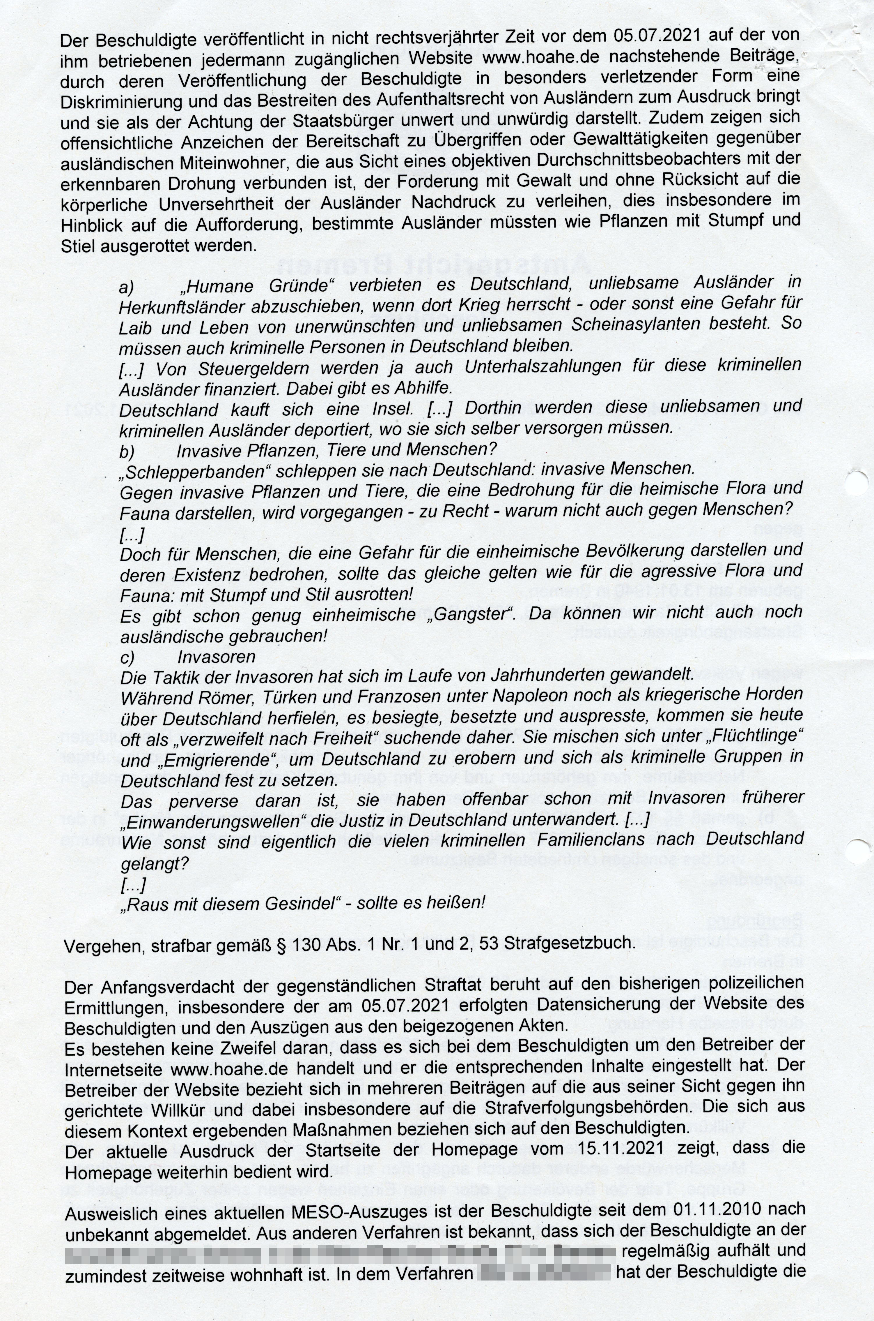 Allein die Tatsache, dass sie ausgerechnet am Geburtstag des Beschuldigten, als einer der Betreiber dieser Website, die Hausdurchsuchung vornahmen, lässt darauf schließen. Schließlich lagen ihre „Verdachtsmomente“ schon seit November 2021 zur Bearbeitung auf dem Tisch. – Doch alle Vorwürfe die in diesem „Durchsuchungsbeschluss“ angeführt sind, treffen nicht zu. Sie sind konstruiert und entsprechen nicht den Gegebenheiten. Für das interessierte Publik alles nachzulesen auf „hoahe.de“